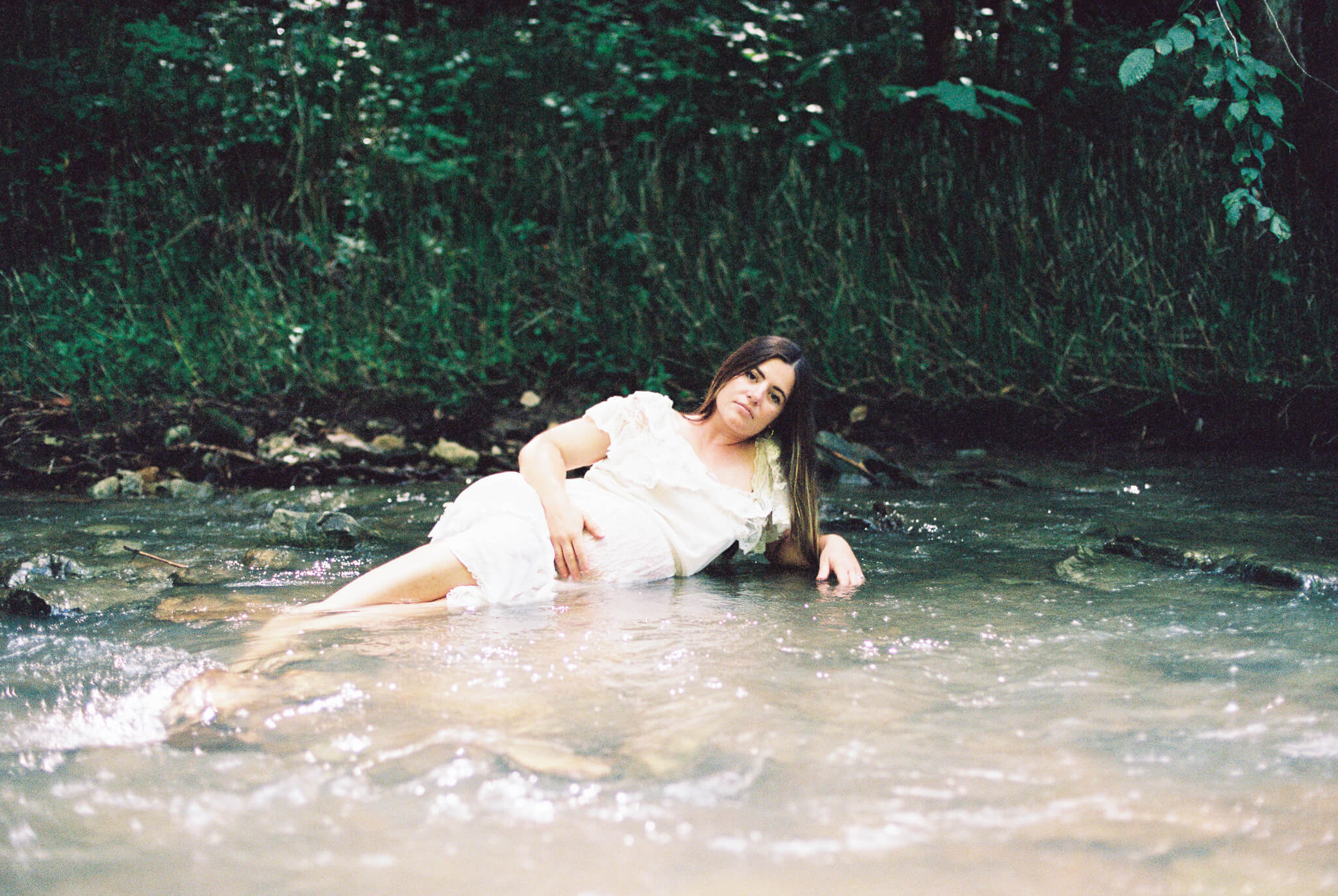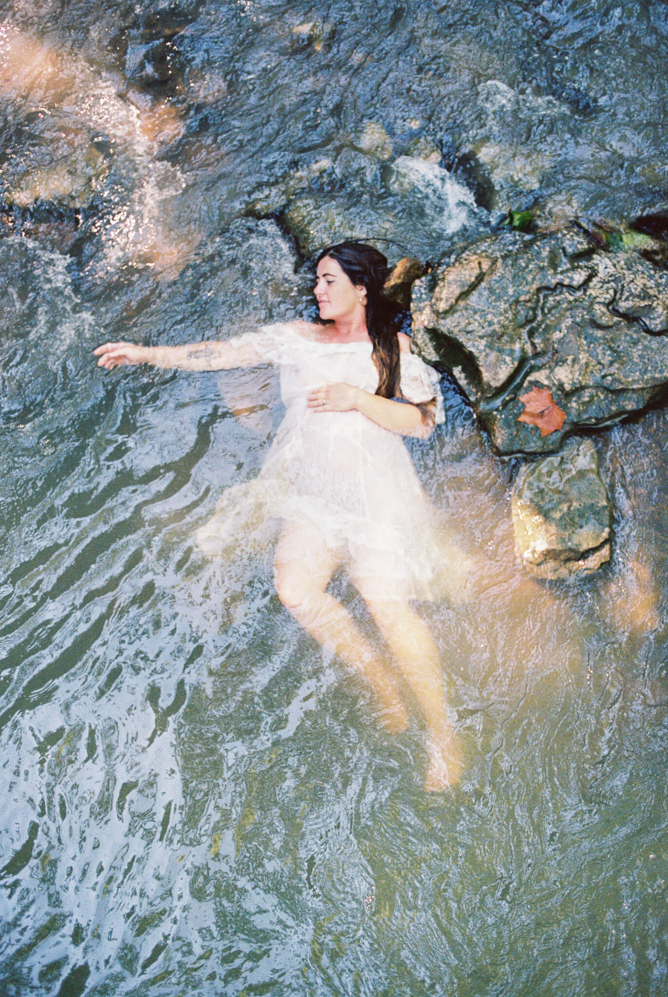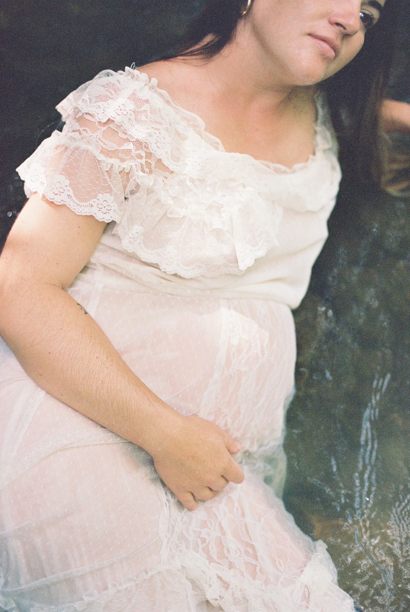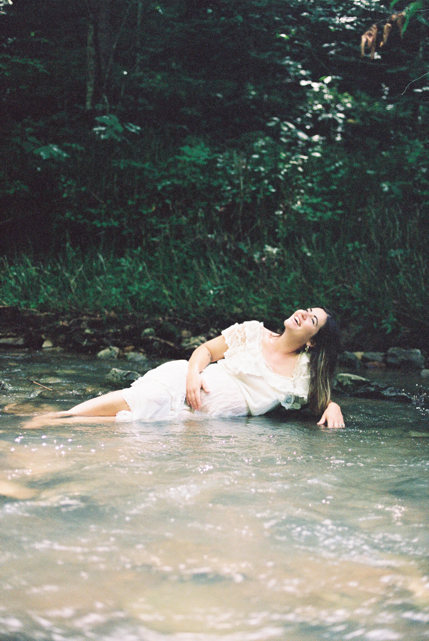 To say these photos were life-giving is not and understatement. It was such a pleasure to witness my friend and muse Senora May in her growth into motherhood. And my word–how beautiful does she looking growing into it? While looking back, I can still feel the rush of cold water on my feet and I can still hear the sounds of the wind in the trees, the babbling creek, and joyous laughter. Upon first look I audibly gasped and squealed in delight at some of these beautiful scans. (Shout out to my wonderful scanning techs over at The Find Lab!)