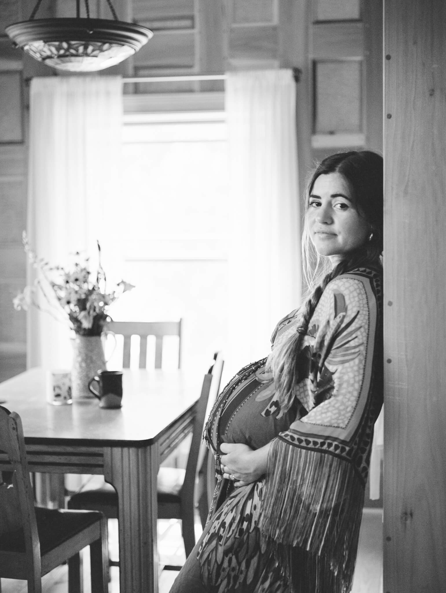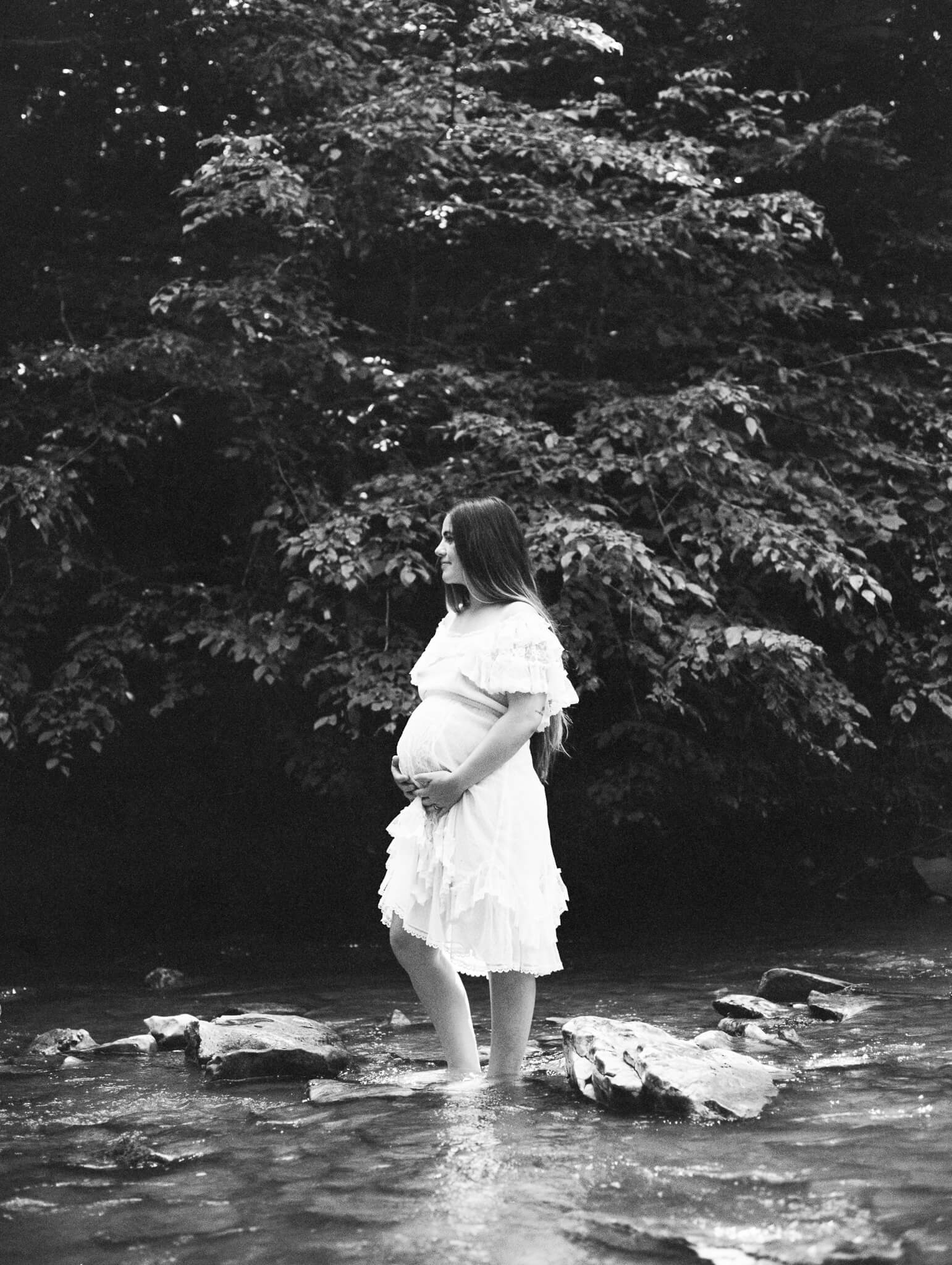 For the last part of our session, we moved outside to a cold and clear creek where she wore a dress gifted by her friend and colleague Margo Price. Her being the brave and daring soul that she is even offered to take a refreshing dip into the creek to celebrate her growing life. It was so fitting and so moving to witness this take place! We had a few laughs while we were at it, of course. But mostly I watched her move so gracefully in the forest, in awe of how comfortable and beautiful she was with the growing life inside of her.